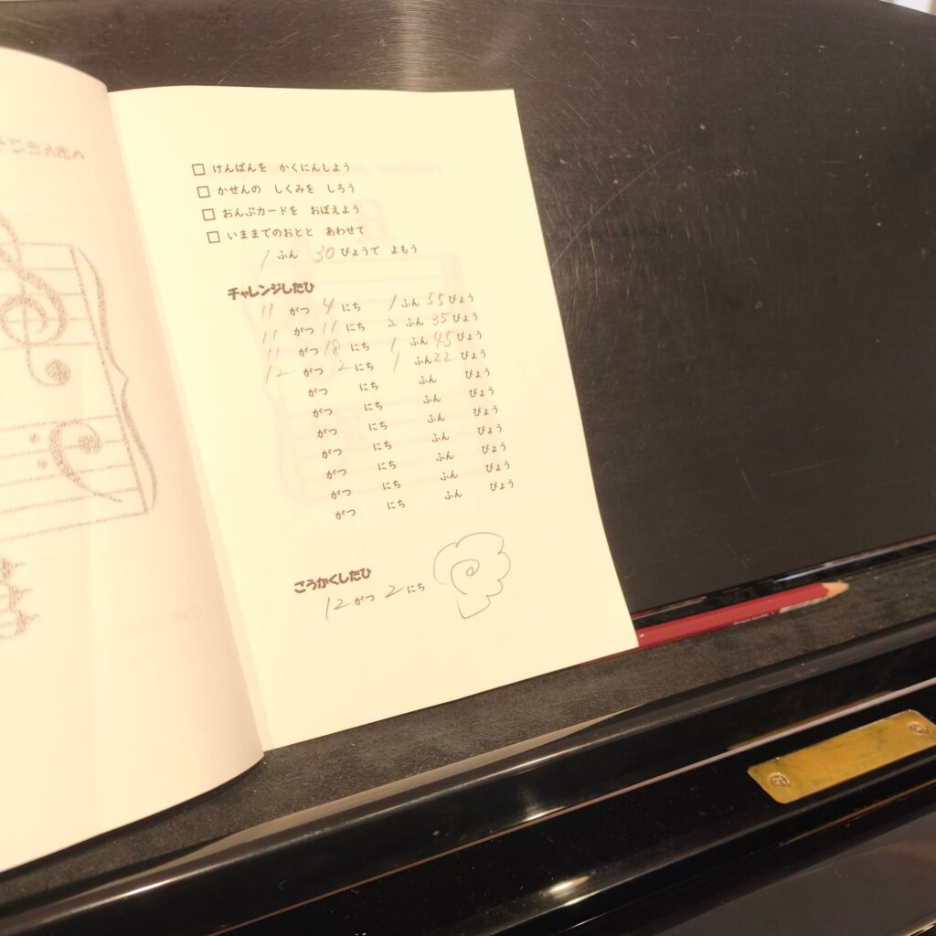 お教室では数か月前に作った音符カードチャレンジノートを使って、何名かレッスンでチャレンジを繰り返しています。