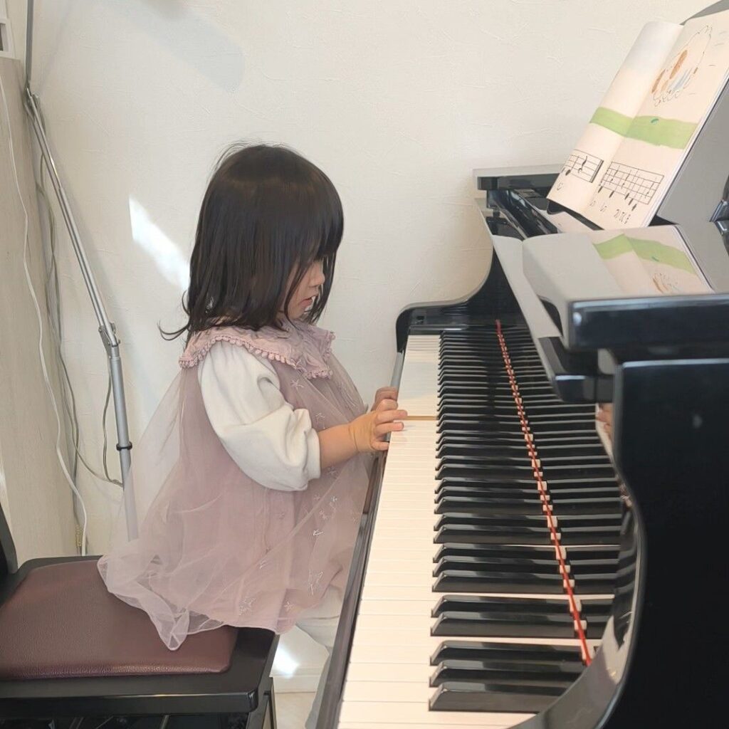 当教室のプレピアノレッスンでは2歳のお子さまからレッスンを行っています。